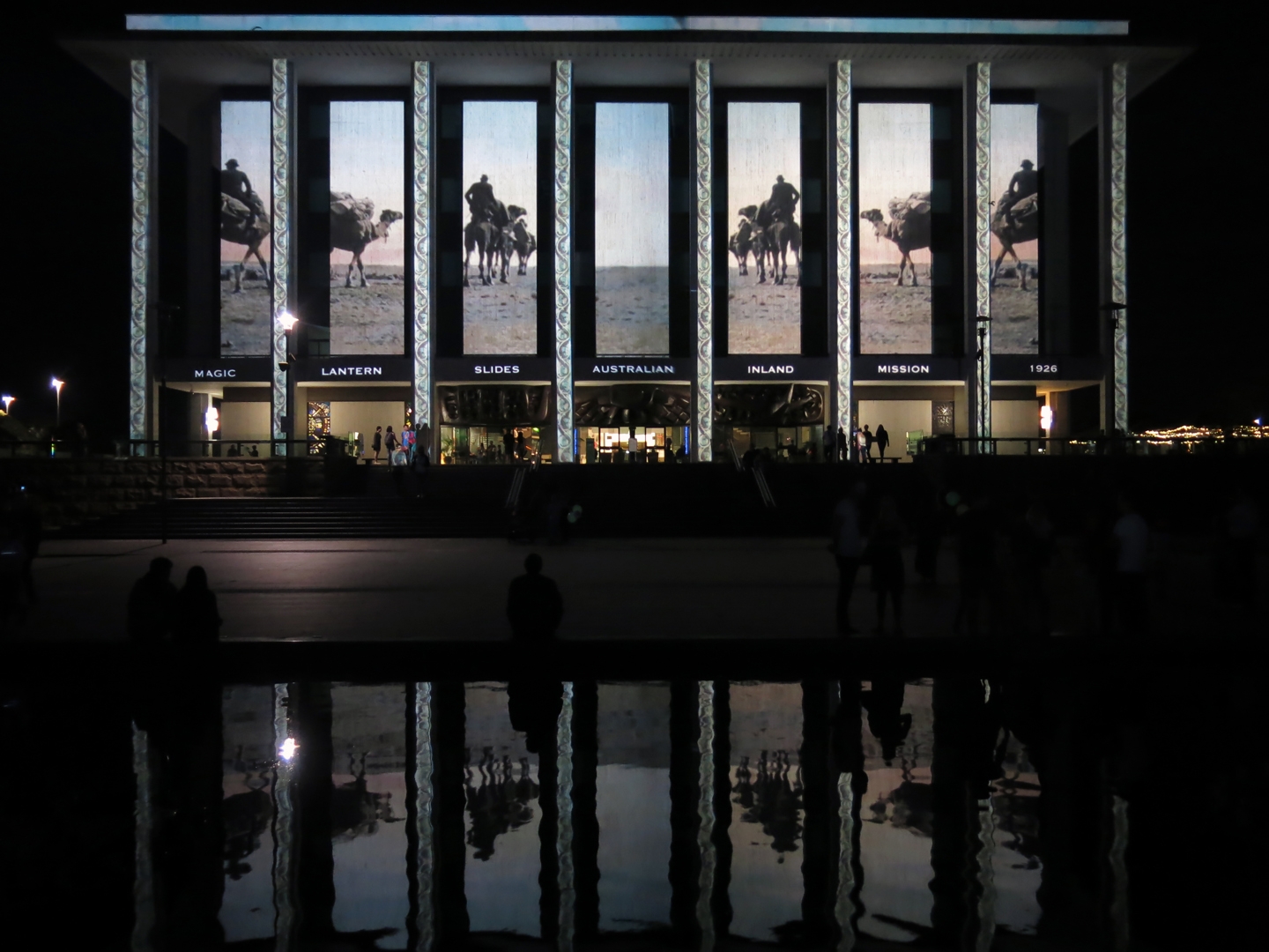 My ANU colleagues Lucien Leon, Kit Devine, Marcia Lochhead, Zoe Tulip, and myself, each designed an Enlighten Canberra projection for the National Library of Australia. Mine was derived from one of the hundreds of beautiful hand tinted magic lantern slides in the Library.