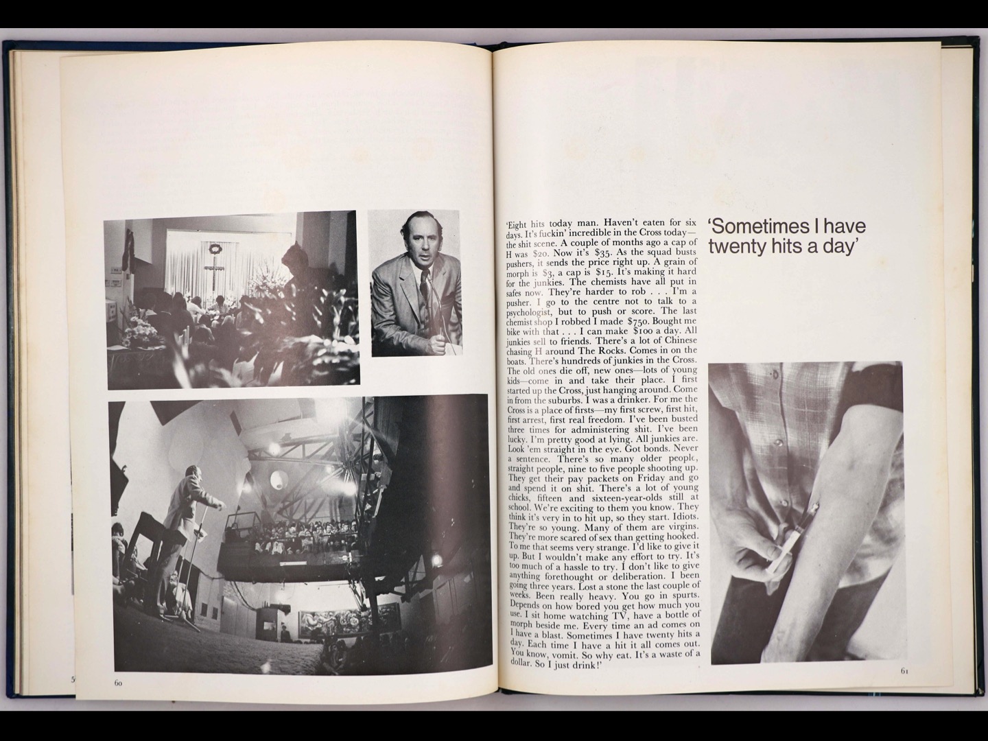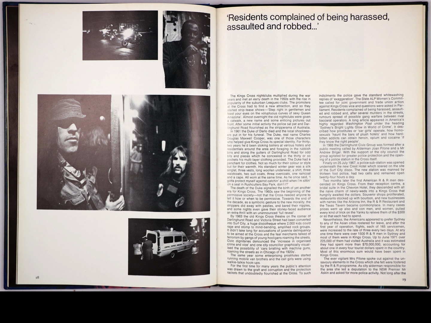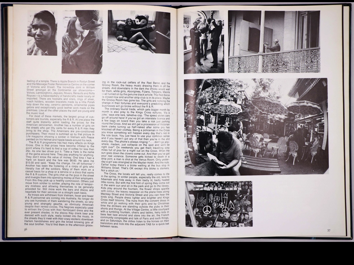 Although the text and photos reveal the wonderful, seedy and intriguing place that was ‘The Cross’ over 50 years ago, the book fails dramatically in that not one photo is captioned – not one, as unforgivable in 1971 as it is today.