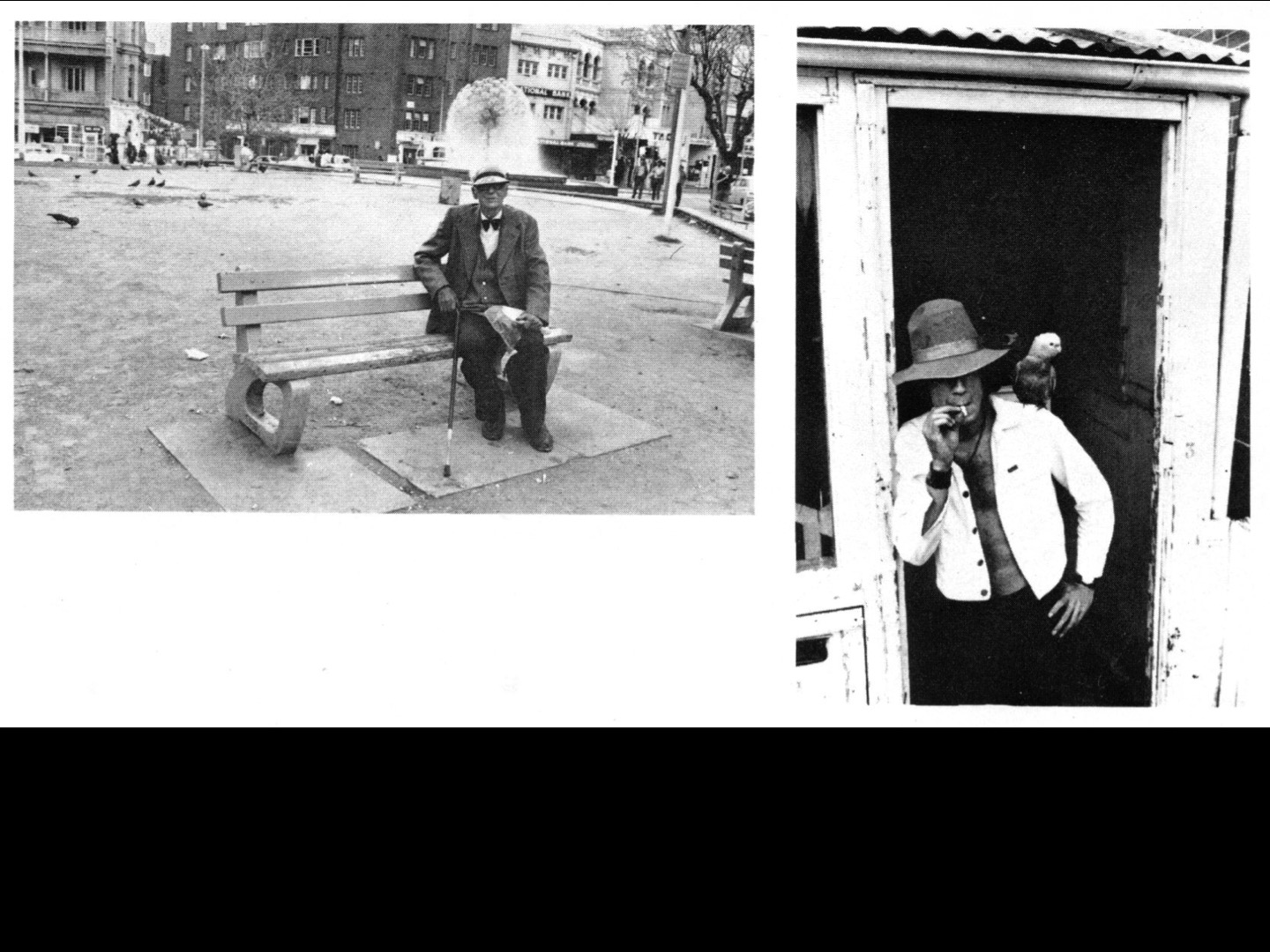 Hippies and heads and spades; dog-walkers and cat-feeders; witches, warlocks, painters; poets, philosophers, pensioners, painters, prostitutes, perves; soldiers and sailors; strippers; gamblers and gunmen; camps and conmen; craftsmen, chefs, shopkeepers, foreigners, bikies, jewellers, junkies, nuns, schoolkids, tourists; princes and paupers and chicks on the make, cops on the take and even an Irish Jew or two. p6