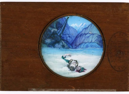 A video of the magic lantern performance I devised in collaboration with Elisa deCourcy, Alexander Hunter and Karen Vickery is now available for viewing online. We performed it at the ANU twice during September 2018, once in the Sir Roland Wilson Building at the Magic Lantern in Australia and the World conference, and once a week later in the NFSA ARC Theatre at the Frankenstein: Two Hundred Years off Monsters conference. It goes for about half an hour, and uses about sixty slides. I decided to hang it off Mary Shelly’s book because I knew we would be performing it for the Frankenstein conference. It was wonderful reading the book again after so long, and I picked out some choice quotes for Karen to intone at intervals through the five ‘scenes’, which begin in a scientific laboratory, and end lost in snow and ice, but otherwise have little to do with the story! I was initially going to commence with a moiré pattern chromatrope to set the dark mood, but I eventually decided to use the new chromatrope that Miheng Dong had cut from acrylic in the ANU Makerspace, working from a pattern coded by Kieran Browne. After that it wasn’t much of a leap to some microscopic slides of bacteria and bacillus from the Atlas of Bacteriology by Slater & Spitta, then after a ‘Flash of Lightning’ slide (Copyright T T Wing), with some great music effects from Alex, Elisa flickered up an anonymous slide of a monstrous skeleton using her fingers. We then dissolved to microscopic cross-sections of rectal cancer growths (!) originally used at the Westminster Medical School, which were also meant to look like aerial views of icy wastes. After Alex’s great music, Karen came into her own as we showed panoramic caricature slides dissolving into comic mechanical slides in the next scene. Her wetly mouthed responses to the slides as they came on the screen were fantastic. it was Elisa’s idea to project both of the Steward lantern simultaneously for a ‘tongue in ear’ sequence, and for a dancing skeleton sequence (with some skeletal EDM from Alex) during the next section of ‘monstrous’ mechanical slides. We used some temperance motto slides, a J W Beattie Port Arthur Slide, two slides from Jane Conquest, some hand painted slides, and an amateur double-exposed ghost slide for the next sequence, which required a lot of changing between carriers. For the final sequence we began ‘finger flickering’ between a group of slides which I originally thought were slides illustrating the Franklin North West Passage expedition of the Erebus, but which I now realise are simply illustrating ‘Arctic Phenomena’. We ended with my favourite slide from my collection, a hand painted slide of some Byronic figure roiling around in the snow, overlooked by a distant church perched high on an icy cliff. Elisa once again had the inspired idea of holding what I call our ‘Cardboard Ken Burns’, a piece of cardboard with a hole in it, in front of the lens, to ‘spotlight’ key elements of the scene. I couldn’t have done it with out Elisa, Alex and Karen, all of whom contributed inspired original ideas. The video was made by Amr Tawfik, who was able to handle the low light OK, and was able to give a good impression of the labours of Elisa, Karen, Alec and myself. The audience reaction to the first performance was good, we filled the room up with fog from a fog machine before they entered, and they filled the basement room to capacity, and were well primed for the show. The audience reaction to the second show was more muted, for several reasons, the necessary intimacy of the performance was somewhat swallowed up by the larger space of ARC, and the audience was less primed as to what to expect.