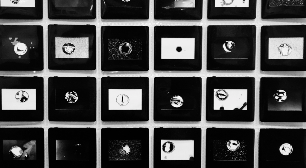Image: UK Frederick, Planet X (detail), 2019, chemigram, slide mounts and plastic sleeving
