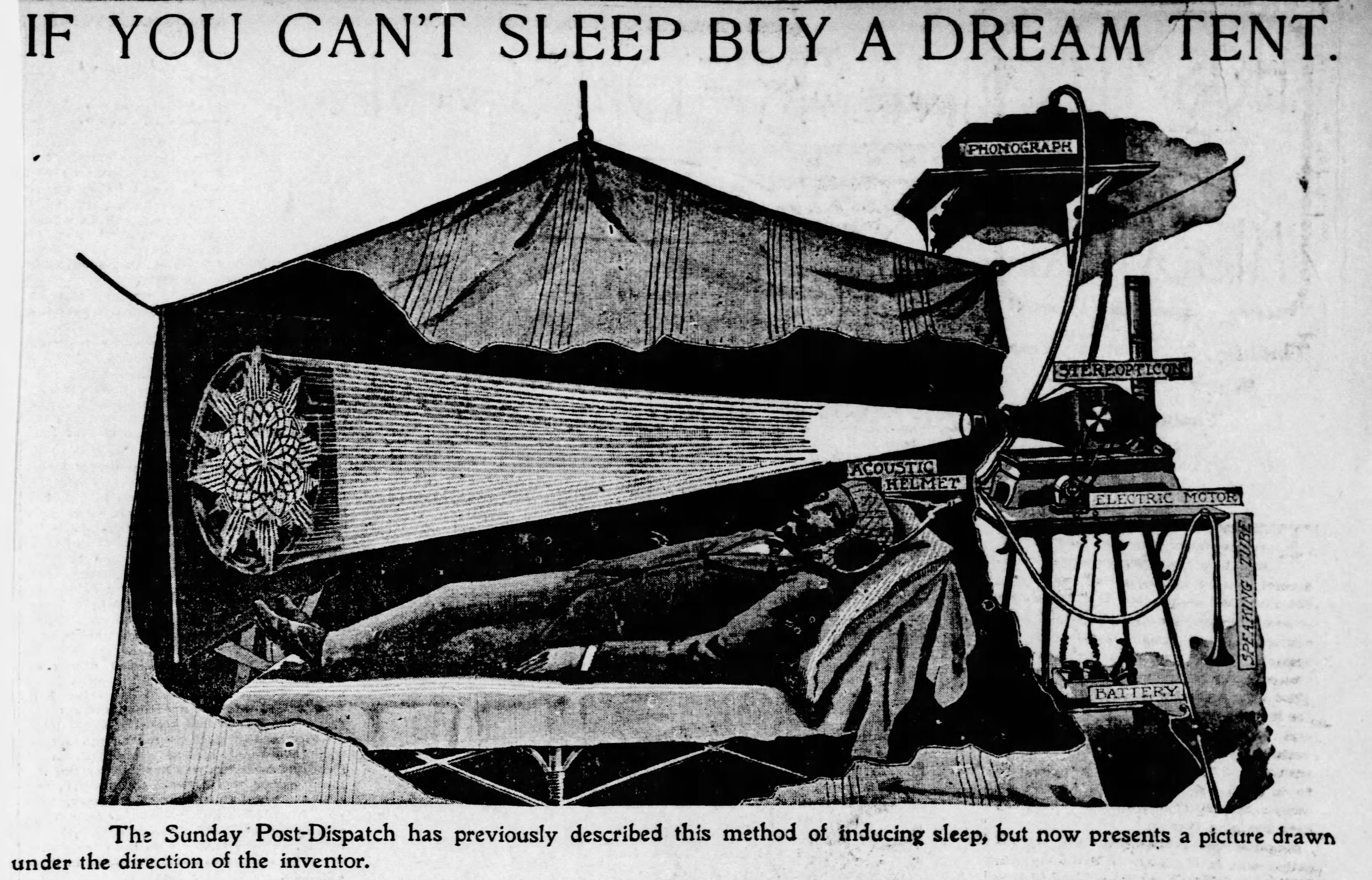 You are about to experience some mind therapy from the late nineteenth century. The Dream Tent was invented by the New York neurologist James Leonard Corning in 1899, the same year Freud published his Interpretation of Dreams.