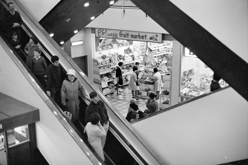 Embassy Fruit Market at the Monaro Mall, Canberra 1966. Photographer John Crowther. NAA: A1200, L55270