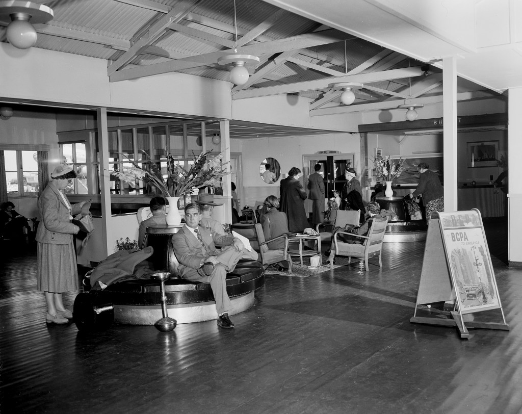 Trans-Australia Airlines lounge, Essendon Airport, Victoria c. 1946. Photographer Neil Murray. NAA: A1200, L3864