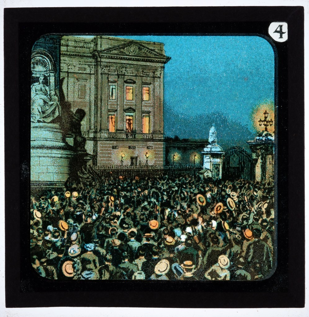 Prince Alfred toured the colonies as Commander of the Royal Navy’s H.M.S.S. Galatea. The Galatea arrived in Sydney Harbour from Melbourne on 21 January 1968. The ceremonial welcome that had been planned for it, complete with flotillas of steamers in formation, welcome banners, and nine and seven gun salutes, was spoiled by a torrential and continual downpour of rain. The following day the Prince was welcomed to Sydney by a procession through Sydney’s streets, around Hyde Park and under no less than four triumphal arches. That night, still in torrential rain, there was a display of fireworks and illuminated transparencies (large patriotic paintings, mounted in windows and on the fronts of buildings, lit from behind by gas lights). One of the most impressive displays was a fire-spitting winged dragon of over 30 metres that silently moved across the surface of the harbour. It consisted of a steamer, entirely covered with detailed transparencies, trailing twenty-two smaller boats festooned with lanterns. Men at the front of the steamer shot fireworks out of the dragon’s mouth and moved its jaws. Unfortunately, photography was not yet sufficiently technically advanced to record these events; although woodcuts made from sketches were included in the Illustrated Sydney News.