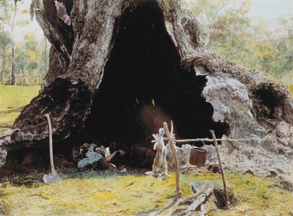 This album was assembled from photographs taken mainly in Australia between 1868 and 1870. It was purchased by the Australian National Gallery and is one of a pair of albums. The other, directly attributable to a Lady Fanny Jocelyn, is concerned with the domestic life of a British aristocratic family in the 1860s.