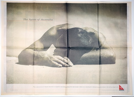 Meanwhile the Sunbaker still had his unalloyed fans. In 1995 the retail artist Ken Done made a series of paintings which gridded the Sunbaker’s instantly recognizable muscular arch in a gestural shorthand across a bright orange field. In the year 2000 the Max Dupain Studio licensed the photograph to QANTAS, who obviously still saw it as an unproblematic image of ‘The Spirit of Australia’. For the Sydney Olympics they published it on billboards and across both pages of broadsheet newspapers with the tagline: ‘The Spirit of Australia: When it comes to the art of relaxation, Australians are recognized as truly world class. Perhaps that’s why the people at QANTAS are so naturally good at making you feel at home, wherever in the world you happen to fly.’ QANTAS’s copywriters summed up the essence of his iconicity: the Sunbaker is at home in Australia, truly relaxed in his decisive claiming of the land. He’s baked in.